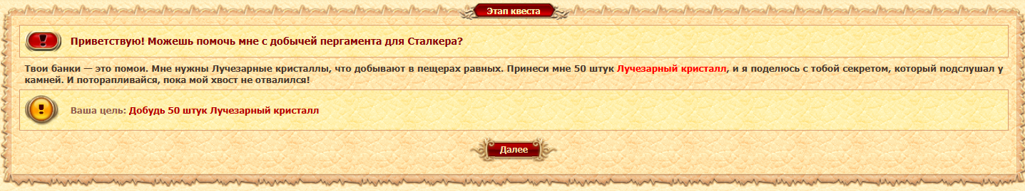 Текущая цель: Добудь 50 штук Лучезарный кристалл