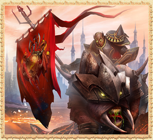 Гордо развевается огненно-красное знамя, на котором вышит герб родного материка, в руках отважного защитника Хаира. На счету грозного воина множество свершений, благодаря которым он стал героем магмарского народа!